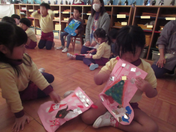 今日の「お楽しみ」は、サンタクロースが10人出てきて、盛り上がりました