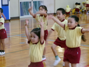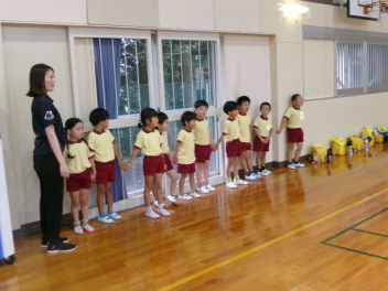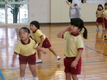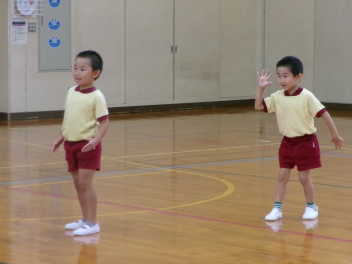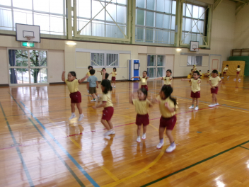 ダンスをしたり、「だるまさんが転んだ」をしたりしました。体育館の広さを感じながら楽しみましたsmiley
