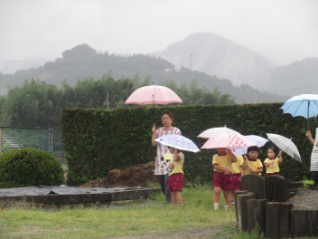 年少さんは、雨の園庭を散策しましたsmiley雨ならではの発見もあったかな