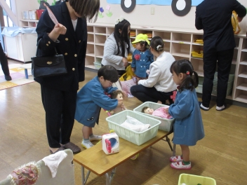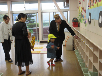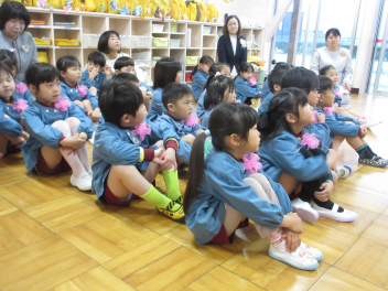 そして、年少さんが、お家の人と一緒に幼稚園にきてくれました。