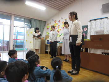 園長先生の話を聞いたり、担任の先生を紹介してもらったりしました。