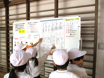 • 11月26日の3年1組国語「ものすごい!食べ物図かんを作ろう」の様子です。「すがたをかえる大豆」で学んだことを生かして、「ものすごい!食べ物図かん」を作ります。一人一人が一番驚いた食品を選び、姿を変える様子を分かりやすくまとめるのがゴールです。この日は、選んだ食品の本の中から、どの順番で、どんな言葉で、どの部分を重点的にまとめるかを考える場面でした。みんな夢中になって取り組み、時間を忘れるほど集中していました。