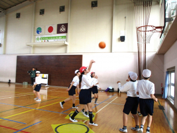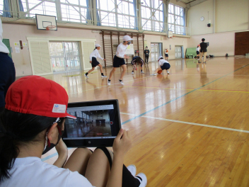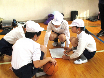 • 12月3日の、5年2組の体育「つなごう絆 シートDEシュート!!」の様子です。準備運動からチームに分かれてスタートしました。チームの課題や特性を意識して練習を行うことで、個々の技能を高めていました。試合前には、より確実に得点するための動きについて作戦を練りました。試合中、その作戦に関わる声掛けを互いにしながら、より多くの得点をすることを目指しました。チームによっては、動きの様子をタブレットで撮影して振り返りをし、次につなげようとしている姿も見られました。