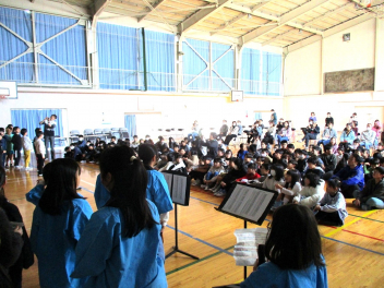 3月2日、6年生を送る会が行われました。スローガンは、「スマイル大瀬 とどけ!~6年生へ感謝の気持ち~」です。5年生が中心となって、全校のみんなが力を合わせて作り上げました。1~4年生は、歌や演奏、ダンスやクイズなどを交えて工夫をして感謝を伝えました。なかよし班でゲームをした後、メンバーからのメッセージ入りの学帽をプレゼントしました。思いのこもったプレゼントでした。最後に学帽をかぶって笑顔の記念写真を撮りました。