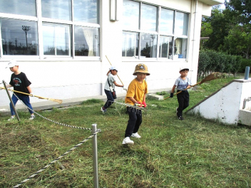 昼休みには、全校児童がなわとび体操の練習をしていました。