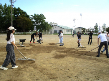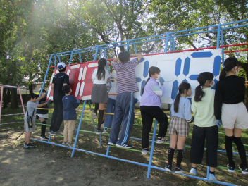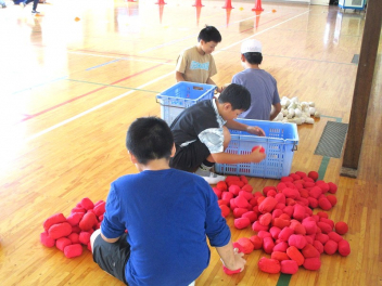 いよいよ明日は運動会です。5時間目に、5・6年生が、運動会の準備をしました。用具・決審・得点・応援・賞品・放送・応援席等、分担した仕事を一生懸命行いました!運動場は部分的にぬかるみがありましたが、何とか準備を進めることができました。短い時間の中で、運営委員会、運動委員会、応援団等が開閉会式の練習もしました。先週、今週の天気の関係で、思うように練習ができず、ぶっつけ本番になる部分もたくさんありますが、温かい応援をお願いします。