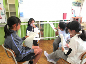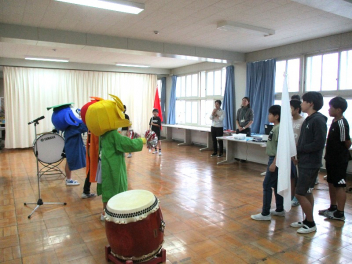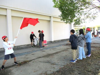 • 10月15日の朝活動は、運動会の応援練習でした。5・6年生が、1・2・3・4年生の教室に行き、応援の仕方を伝えました。そして、実際に声を出したり応援グッズで音を鳴らしたりしました。学校中の雰囲気が一気に盛り上がりました。