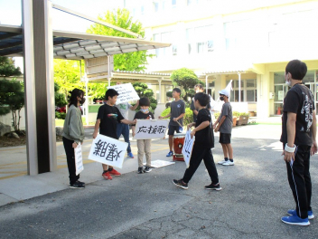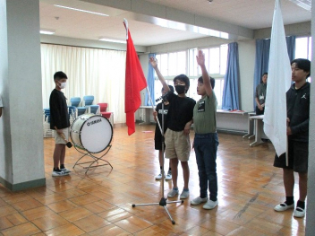 • 雨が続き、運動会の総練習ができていない状況です。そこで、おおせーずタイムに、リモートで開会式の掛け声の練習を行いました。6年生の応援団と運営委員がビッグホールに集まり、各教室に配信をしました。あさっての開会式では、今日の練習を生かして、掛け声やスローガンを元気な声で言えるといいですね。