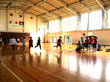 2時間目は、体育館で1・2年生がダンスの練習をしていました。これまでの練習で、2年生がお手本を見せてくれていたので、1年生も上手に踊れるようになっています。