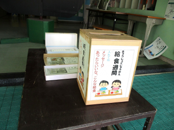また、「あったらいいなこんな給食」の募集箱も設置されています。応募された献立は、給食室前の家庭科室廊下掲示板に掲示されています。