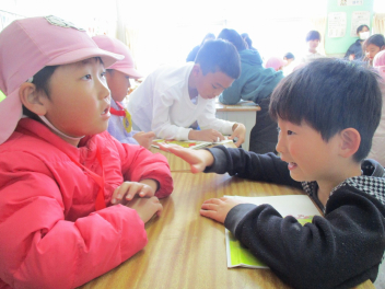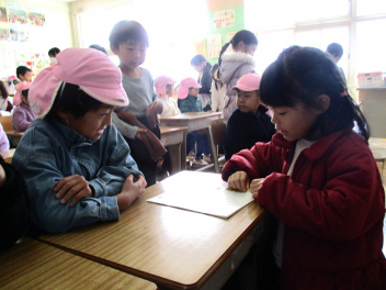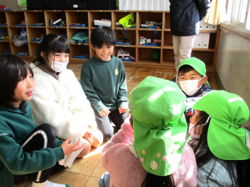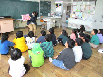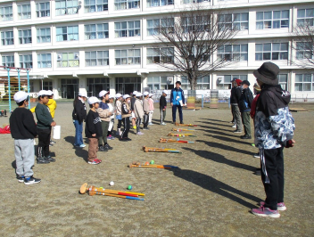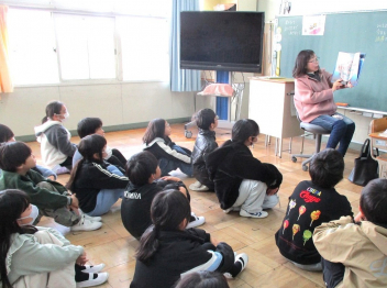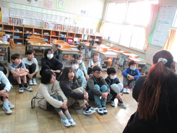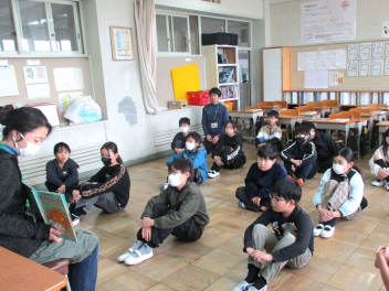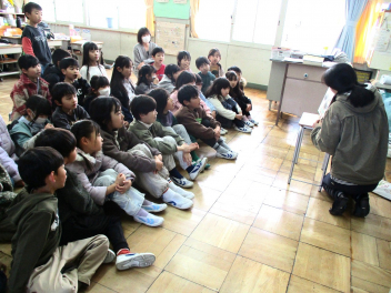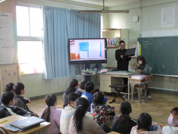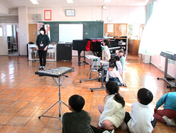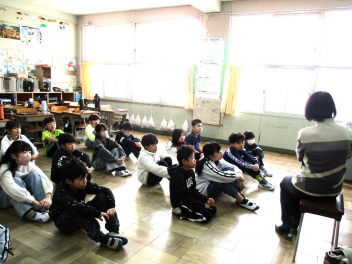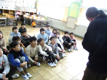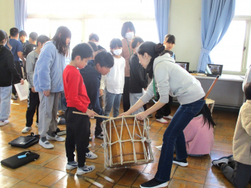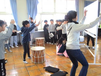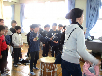 2月19日の3年生の総合的な学習の時間の様子です。今日は、遠州大念仏保存会の池谷さんに来ていただき、笛や踊りなどを教えてもらいました。子供たちは7月に見た遠州大念仏に興味をもち、1年間調べ学習を進めてきました。その中で、「私たちもやってみたい」「何とか残していきたい」という思いをもちました。あと2回、本物の笛や太鼓を使って練習をします。そして、3月9日の昼休みには、保存会の皆さんの中に3年生も一部加わり、大念仏を披露する予定です。