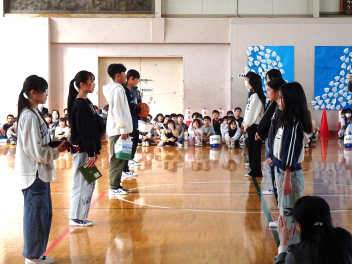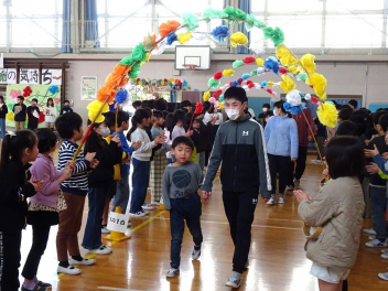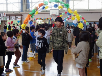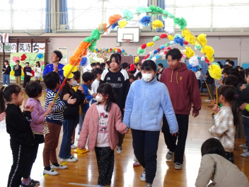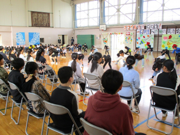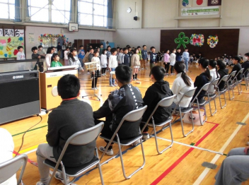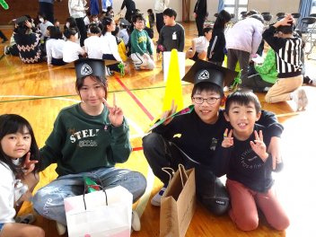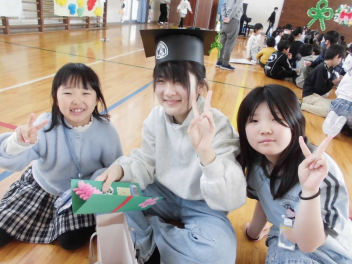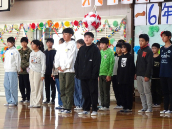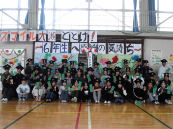 3月2日、6年生を送る会が行われました。スローガンは、「スマイル大瀬 とどけ!~6年生へ感謝の気持ち~」です。5年生が中心となって、全校のみんなが力を合わせて作り上げました。1~4年生は、歌や演奏、ダンスやクイズなどを交えて工夫をして感謝を伝えました。なかよし班でゲームをした後、メンバーからのメッセージ入りの学帽をプレゼントしました。思いのこもったプレゼントでした。最後に学帽をかぶって笑顔の記念写真を撮りました。