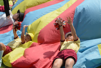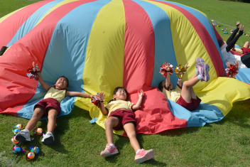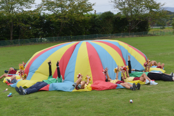 平山幼稚園のこどもたちも一緒にできたため、とても綺麗にバルーンが開きました