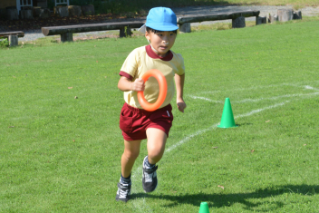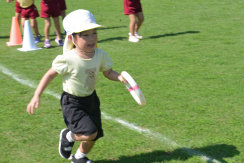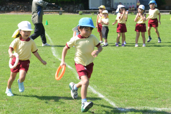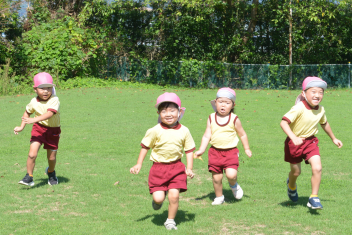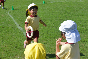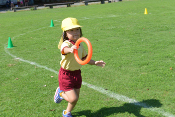 芝生グラウンドでは、年少さんはかけっこ、年中・年長さんはリレー遊びを楽しみました