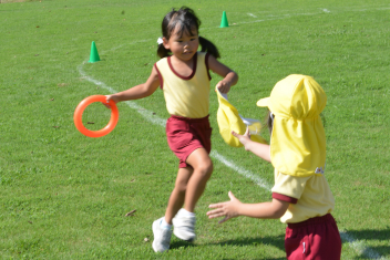 年少さんは、園庭、教室で、いろいろな遊びを通してふれ合いました