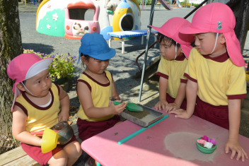 外遊びでは、時間制限を掛け、熱中症対策をきちんと行って遊びました