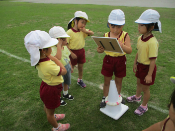 始業式では、大きな声で園歌を歌った後、代表のこどもたちが、夏休みの思い出について話してくれました