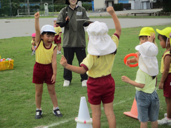 園長先生からは、夏休みの約束だった「早寝早起き」「たくさん遊ぶ」「何かできるようにチャレンジ」について話がありました