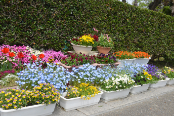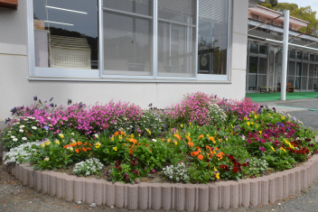 プランターの花も綺麗に咲きましたので、正門周辺にレイアウトしました