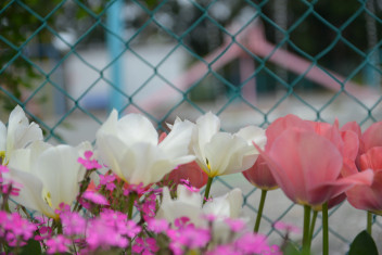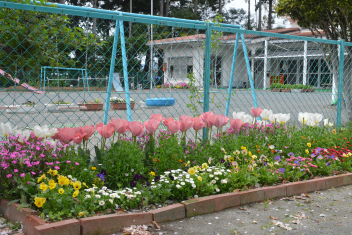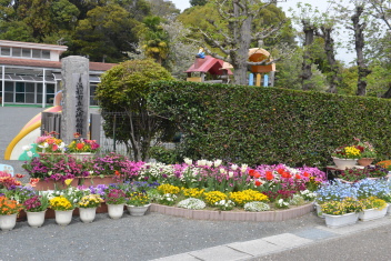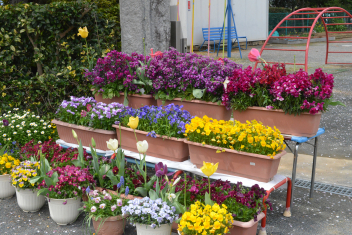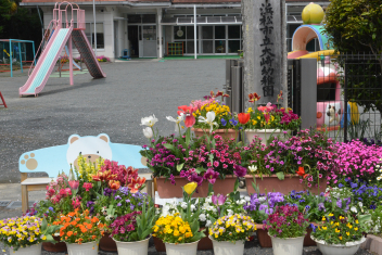 • 大崎幼稚園の花壇の花や桜が満開に咲いています