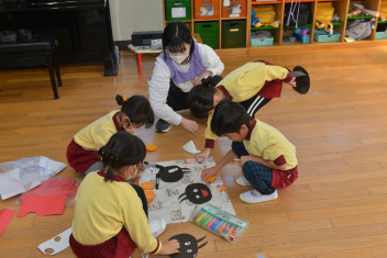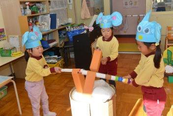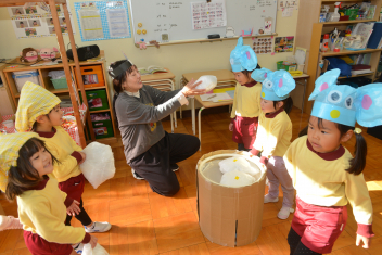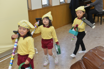 年中さん、年長さんは、小道具づくり、発表会の練習に張り切って取り組みました