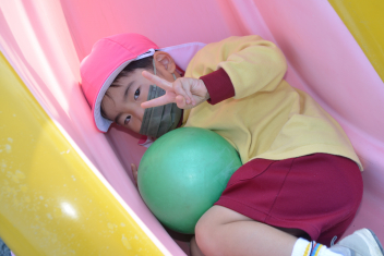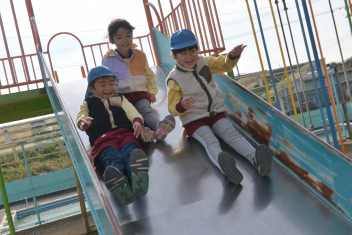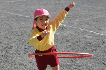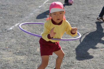 年中さんは、フラフープや滑り台、砂・土遊び等、元気いっぱいに遊びました