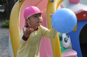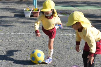 年少さんは、園庭でボール遊びを中心に、楽しく遊びました