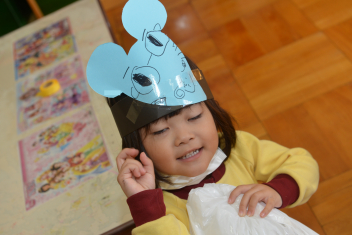 年少さんは、クリスマス会でサンタクロースさんからプレゼントをもらうための大きな袋を作りましたwink
