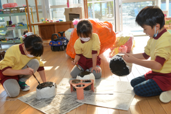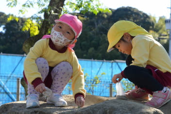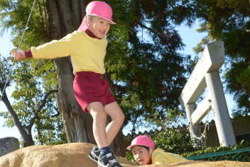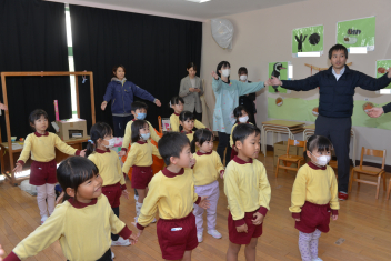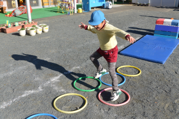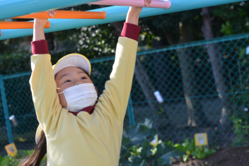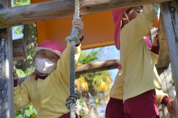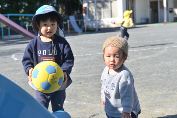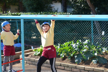 年少さん、年中さんは、寒さに負けず、園庭で元気いっぱい遊びました