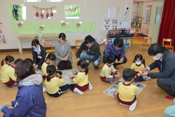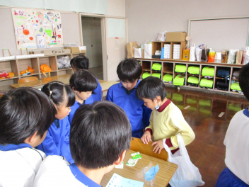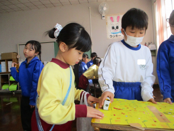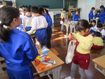 年長さんは、東小学校に招待され、1・2年生との交流会がありました
