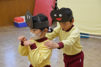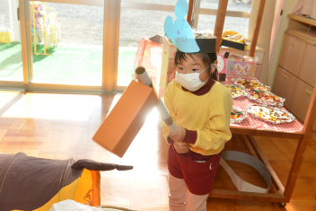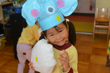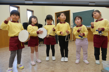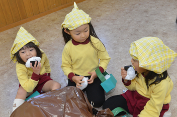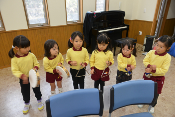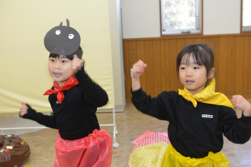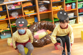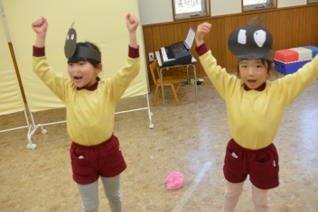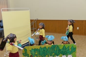 合奏練習の後、年中さんと年長さんで、劇を見せ合いました