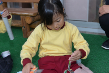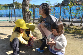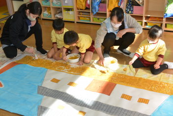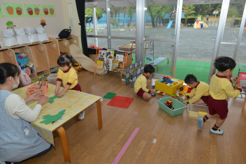 • 年少さんは、砂遊びやままごと遊び、追いかけっこ等、いろいろな遊びを楽しみました