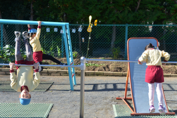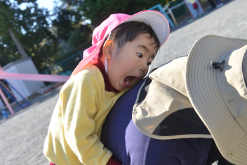 年少さんは、発表会の練習後、園庭で元気いっぱい走り回って遊びました