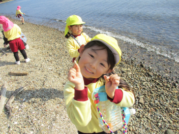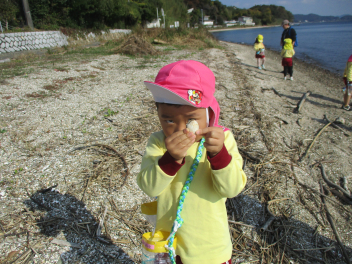 浜名湖岸まで行き、綺麗な貝殻やガラス玉などを見つけました