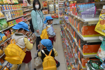 その後、コンビニエンスストアーで、100円分の買い物体験をしました