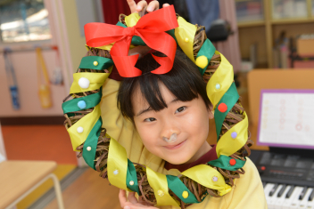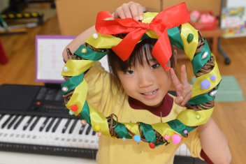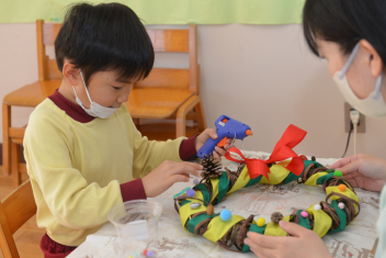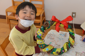 年長さんは、昨日のクリスマスツリーに続いて、クリスマスリースを作りましたsad