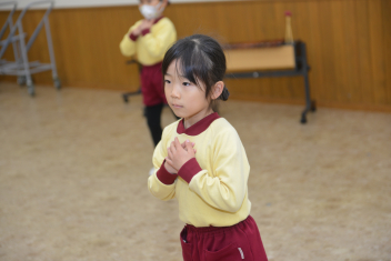 年中さん、年長さんは、自治会館にて、発表会の練習をしました