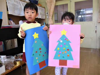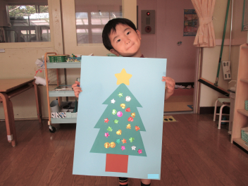 いろいろな素材を使って、とても素敵なツリーが出来上がりましたcheeky