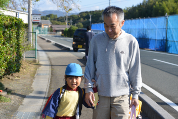 登園から、園長先生が「マリオ」に仮装してお出迎え