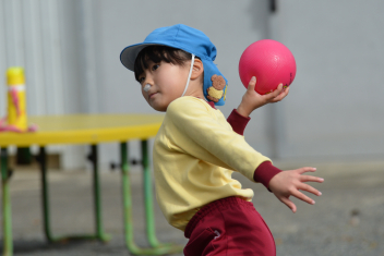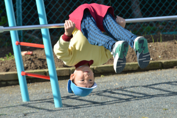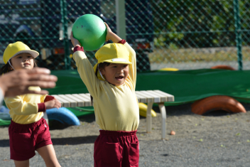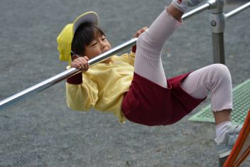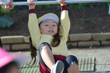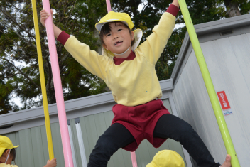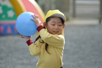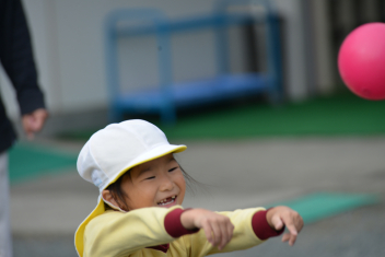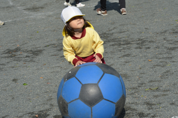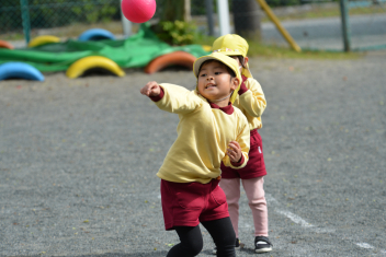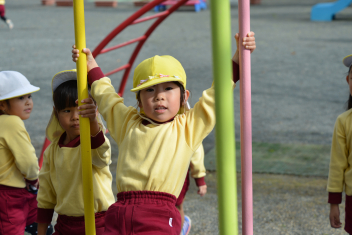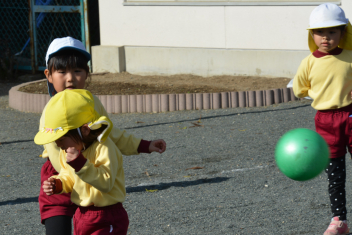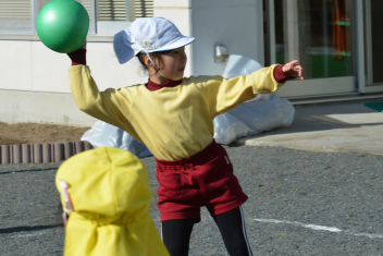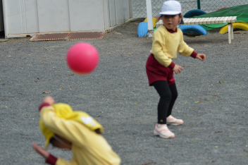 こどもたちは、強風に負けることなく、園庭で、ドッジボールや転がしドッジ、鉄棒やのぼり棒など、いろいろな遊びを楽しく遊びました