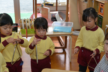 年少さんは、カスタネットの練習ですwink