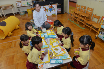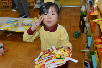 年中さんは、げんきっき発表会に向けて、小道具づくりを始めました