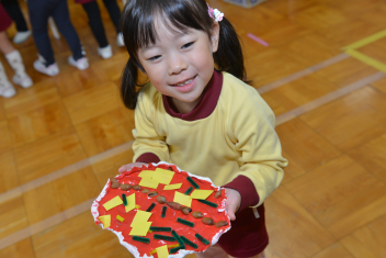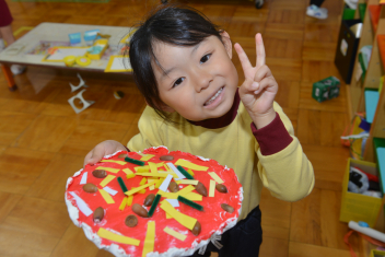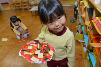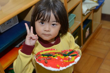 年中さんは、小判を作りました写真は、三ケ日青年の家で親子で作ったピザを思い出して、作ったものです