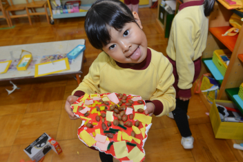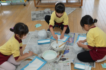 年長さんは、お面作りを始めました