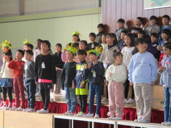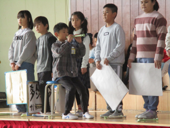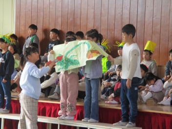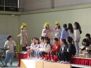 それぞれの学年が、本年度、学んできたことを、クイズ、音読、劇、合唱、合奏など、いろいろな形で工夫して発表することができました。発表している子供たちも、観ている子供たちも笑顔sadになりました!!