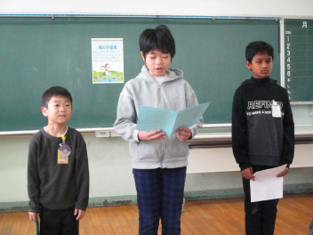 3人の児童が「2学期頑張ったこと」を発表しました。校長からは、2学期を振り返り、各学年で頑張ったことについて話をしました。2学期も全校みんなで「竜の子宣言」を意識して取り組み、実りある2学期になりました。
