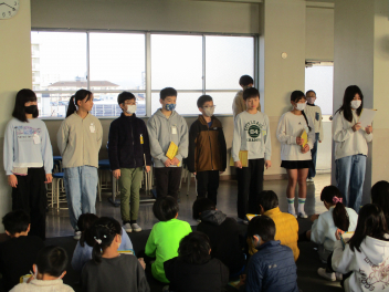今日は、委員会の委員長が来年度、5年生になってから委員会活動を始める4年生に各委員会の活動内容を紹介しました。