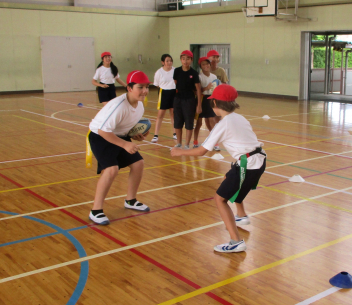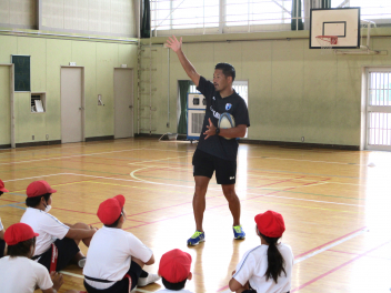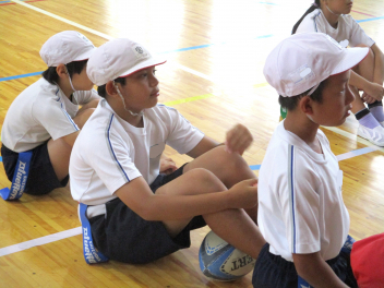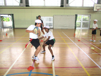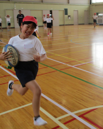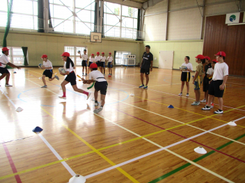 4年生が静岡ブルーレヴズの方からタグラグビー講座を受けました。