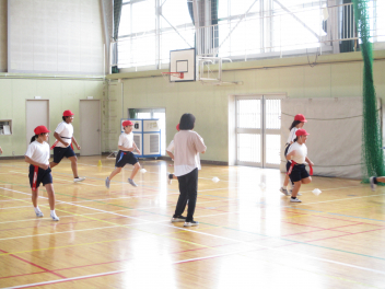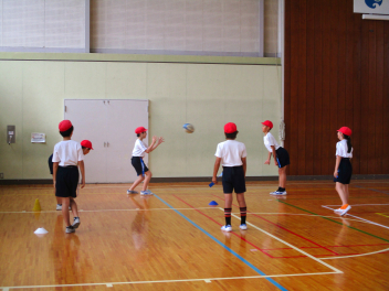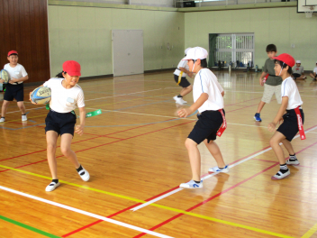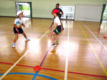 5年生は、4年生のときにもタグラグビー講座を受けているので、昨年度のことを思い出しながら動きました。