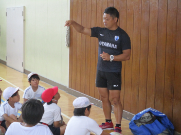 藤井コーチは、心が一番大事「思いやりの心」「チームワーク」「ルールを守る(話をしっかり聞くなど)」ことの大切さを話してくださいました。